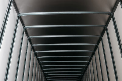Strick's aluminum tension roof bow system improves the strength of the design and maintains a taut ceiling structure that provides a roof crown to facilitate water run-off. An extra bow in the front and rear helps with racking stability. The tension roof design versus bonded roof allows quicker, stressfree maintenance if replacing.